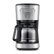• 12-Cup Capacity: The 1.5-litre glass carafe prepares up to 12 cups of coffee in a single cycle, making it ideal for large households or office environments.