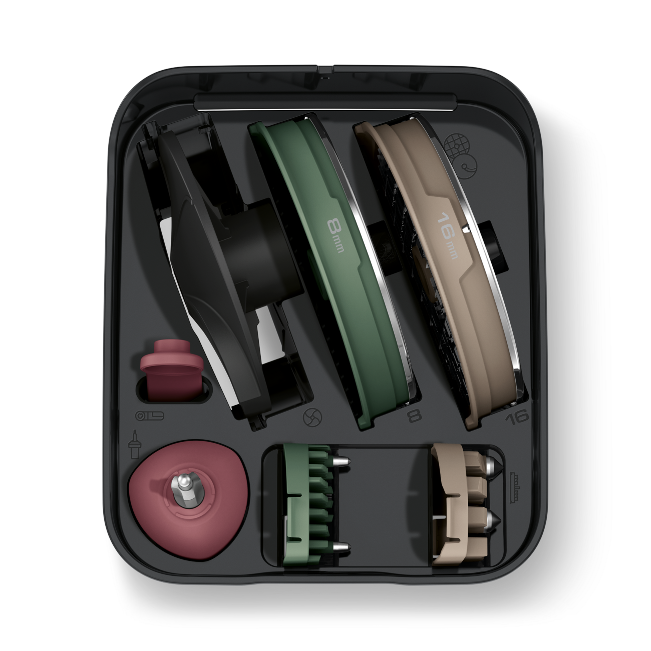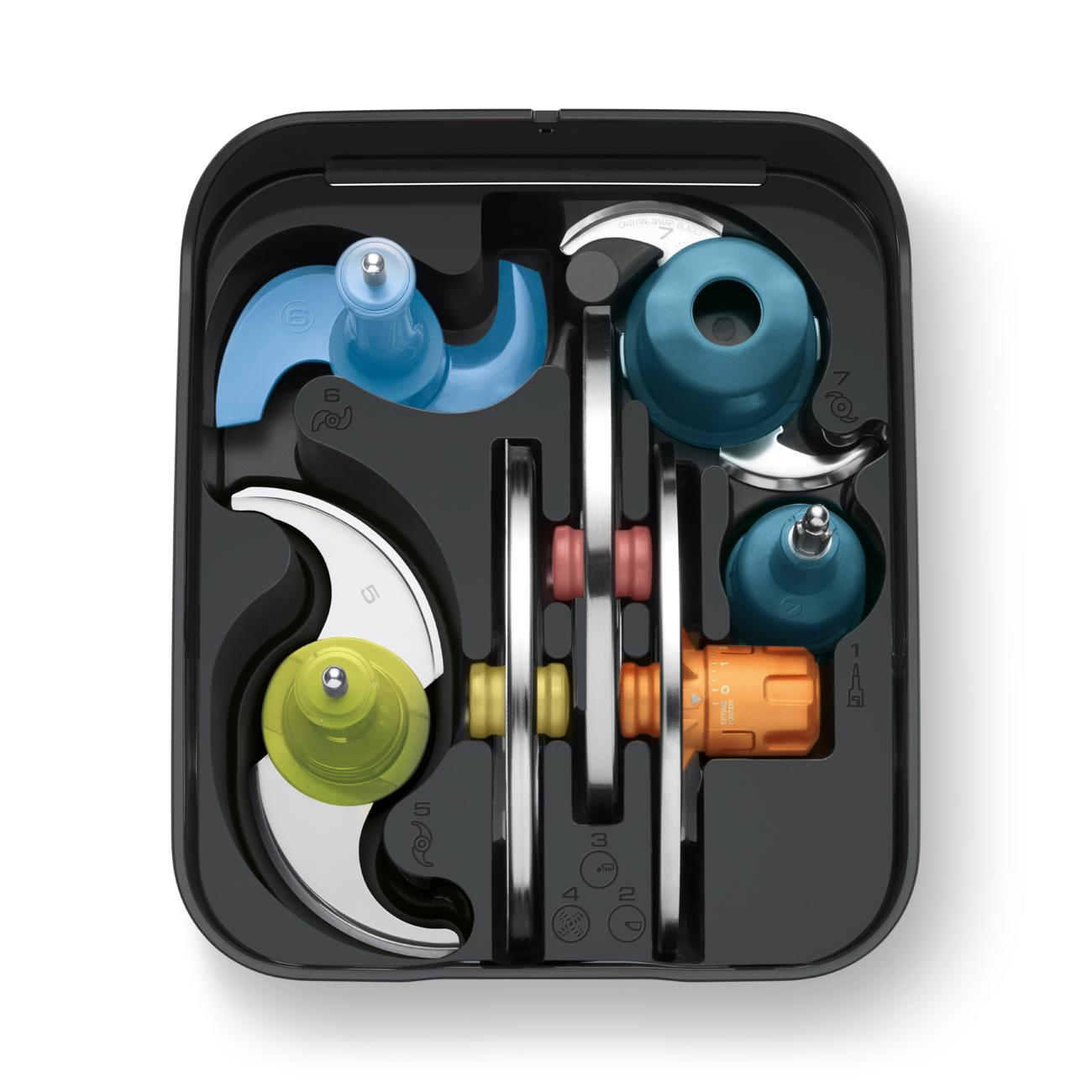 • Chef’s Armoury Storage: Dedicated containers safely house all discs and blades, keeping your kitchen organized and your tools sharp.