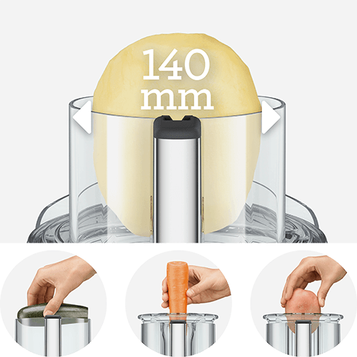 • Extra-Large Feed Chute: A wide 140mm opening accommodates large or whole vegetables, significantly reducing prep time.
