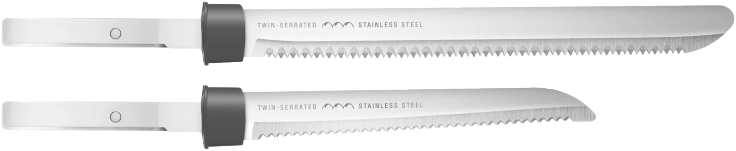 • Dual Blade System: Includes an 18cm Carving Blade for large roasts and poultry, and a 13cm Slicing Blade for smaller cuts, breads, and vegetables.