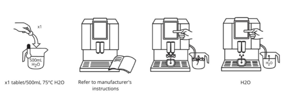 1. Add 1 tablet to 500ml of warm water (approx. 75°C) and stir until completely dissolved.