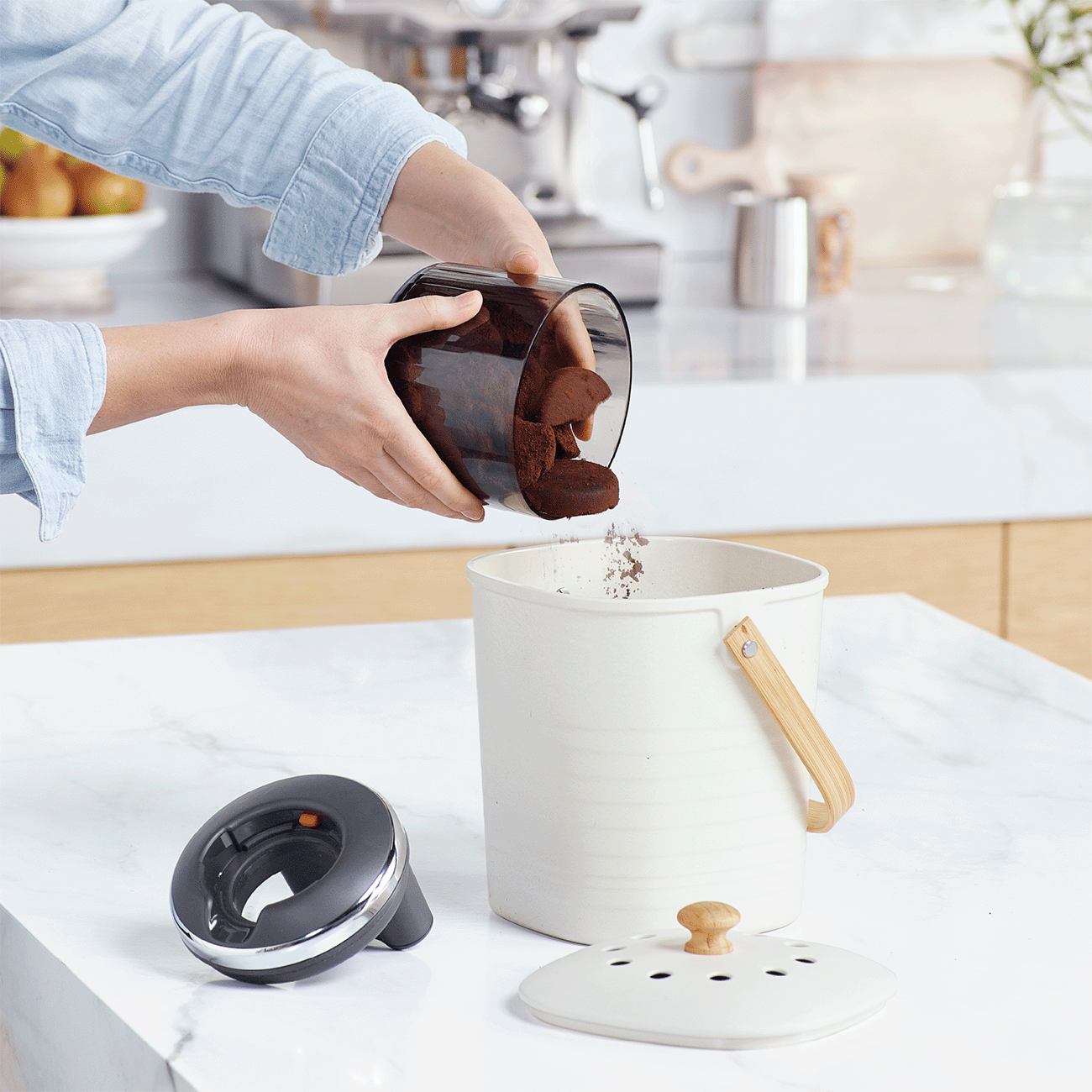 • Easy Clean Design: The internal container is quick to empty and easy to rinse, ensuring your coffee prep area remains sanitary.